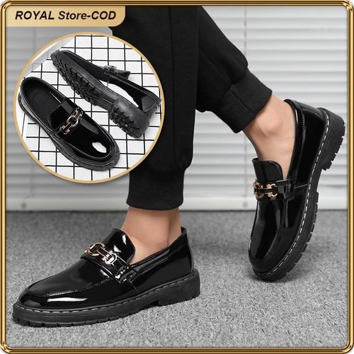 Step into unparalleled sophistication and style with our Men's Formal Glossy Loafers, expertly crafted for the modern gentleman who values elegance and comfort equally. These premium shoes feature a striking high-gloss black finish, designed to seamlessly elevate any attire, making them the ideal choice for a wide range of occasions. Equipped with a sturdy and durable anti-slip rubber sole, these loafers guarantee superior traction and stability, ensuring secure footing on diverse surfaces, from office floors to event halls. A comfortable and breathable interior, complete with soft lining and cushioned footbed, ensures comfort throughout the day and night. The refined gold-tone buckle accent adds a luxurious and classy detail, providing the perfect finishing touch to any formal or casual ensemble. Whether attending important business meetings, formal events, weddings, or casual social gatherings, these loafers effortlessly enhance your style. Upgrade your footwear collection today and experience unmatched style, comfort, and durability.