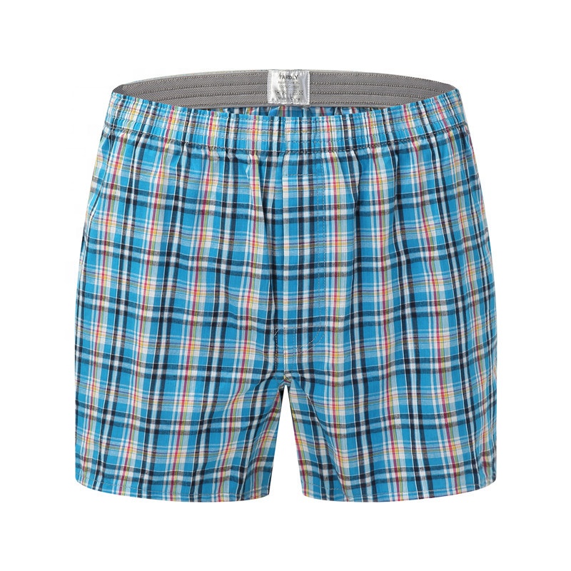 Mens Boxers Elastic Waistband Shorts Cotton Loose Mens Woven Shorts Boxer Striped Mens Underwear